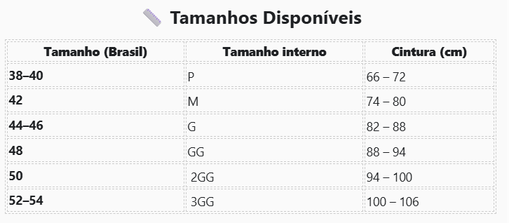 com elasticidade confortável para modelagem visual do abdômen e da cintura. Discreto sob a roupa, flexível e ideal para uso diário com segurança e conforto.
